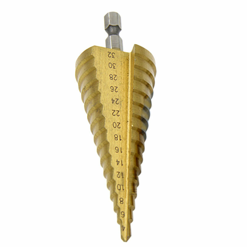 Title (ebay affiliate link): 4-32mm HSS Titanium Hex Shank Step Cone Drill Bit Hole Saw Cutter Tool #ur6