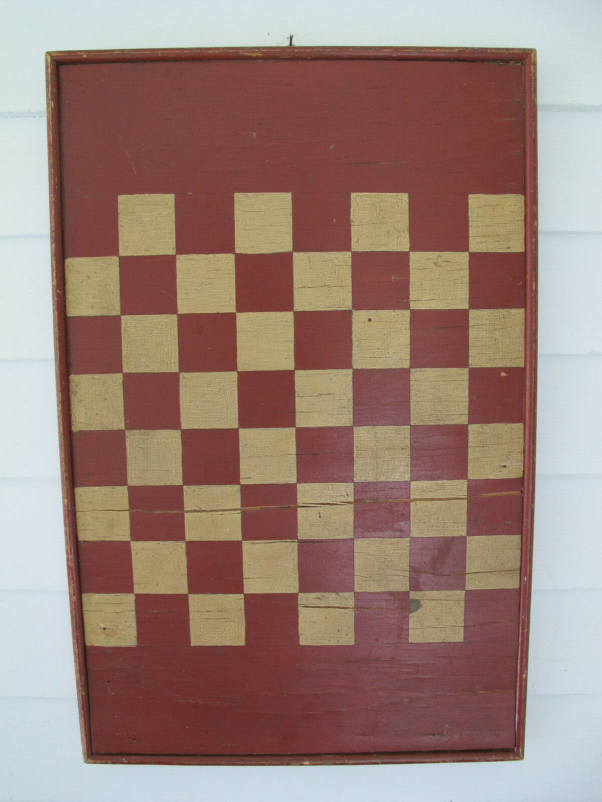 Title (ebay affiliate link): VINTAGE PAINT WOODEN GAME CHECKER BOARD MAKE DO