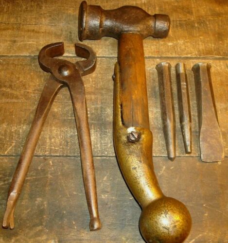 Title (ebay affiliate link): VINTAGE BLACKSMITH HAMMER, TONG AND CHISEL TOOL LOT UNUSUAL ANVIL HAMMER