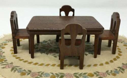 Vintage Dollhouse Miniature Wood Table & 4 Chairs Strombecker Kage Era Furniture