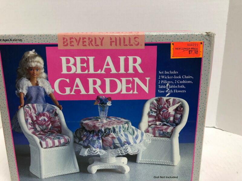 Title (ebay affiliate link): 1990 Belair Garden Wicker Furniture Vintage Barbie Fashion Doll Set