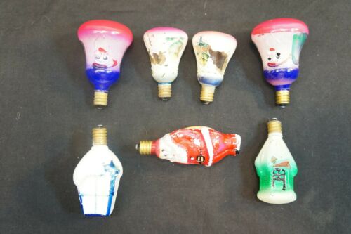 Title (ebay affiliate link): 7 Vintage Milk Glass Figural C7 Christmas Light Bulbs Bells Lantern Santa House