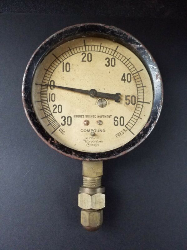 Title (ebay affiliate link): ANTIQUE JAS P. MARSH COMPOUND GAUGE-VACUUM/PRESSURE RECALIBRATOR STEAMPUNK RETRO