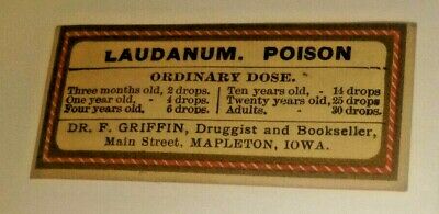 Title (ebay affiliate link): Original early 1900s LAUDANUM. Poison Ordinary Dose Medicine Bottle LABEL 2.5x1"