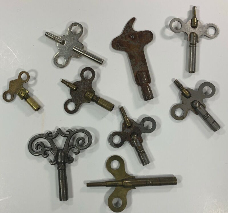 Title (ebay affiliate link): Lot of 9 Antique Brass Clock Winding Keys Ornate Vintage