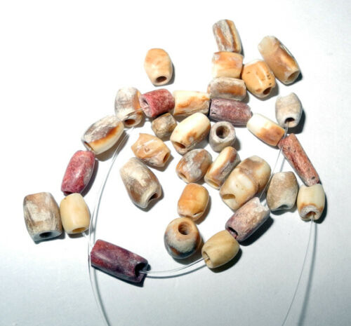 Title (ebay affiliate link): 30 PRE-COLUMBIAN - SHELL & STONE BEADS - MOCHE culture PERU c.800 AD