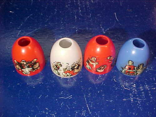 4-1930s CHRISTMAS TREE Lights CARTOON Plastic SHADES w POPEYE-FLASH GORDON etc