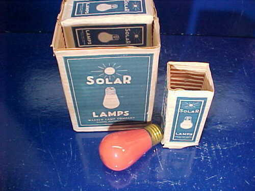 Title (ebay affiliate link): 6 Unused-1930s SOLAR Christmas 10w ORANGE LIGHT BULBS w Orig Packages