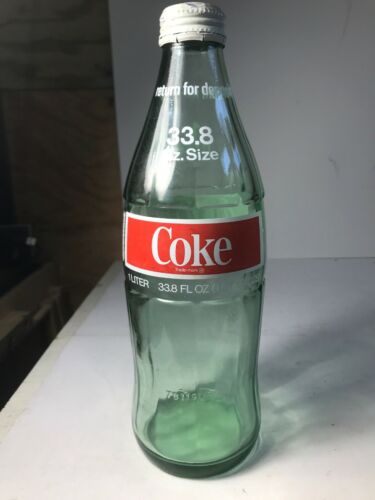 Title (ebay affiliate link): 1 Liter 33.8 Fl Oz Coca Cola Bottle Green Glass Coke Old