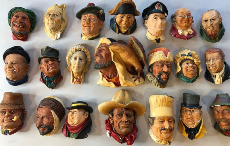 Title (ebay affiliate link): Bossons England VINTAGE HUGE COLLECTION 21 Piece Ceramic Chalk Heads! VERY RARE