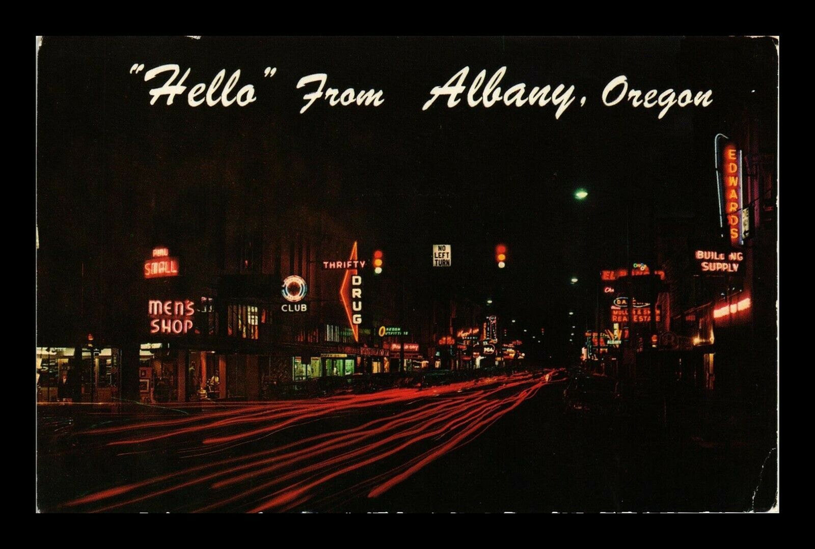 ALBANY OREGON FIRST STREET NIGHT VIEW US POSTCARD