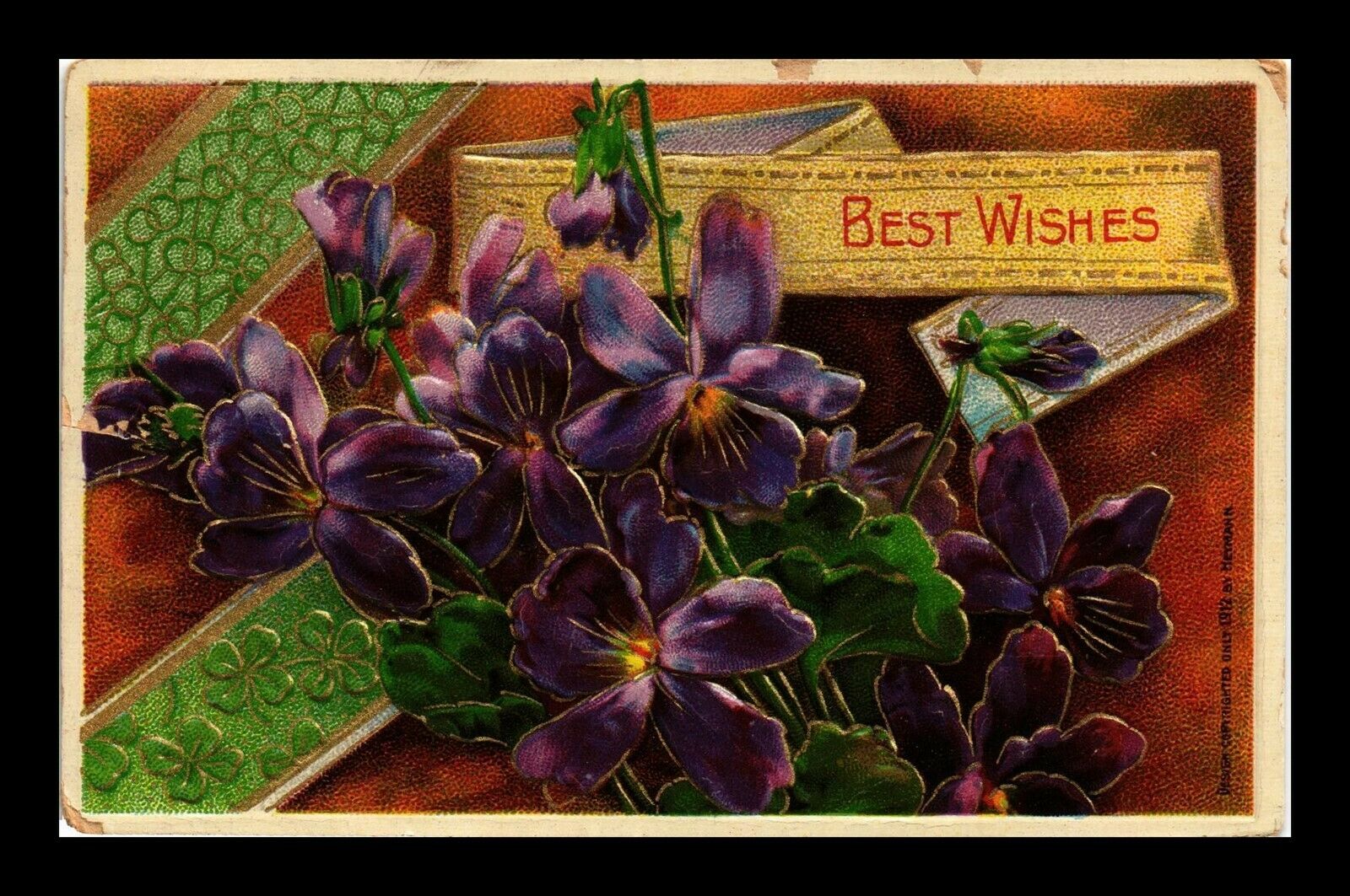 EMBOSSED BEST WISHES FLOWERS US POSTCARD