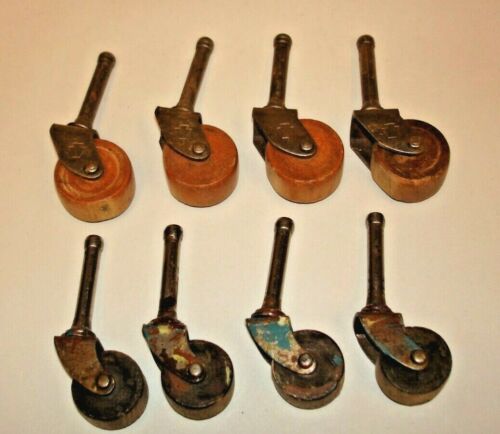 Vintage Wood Wheel With Metal Insert Furniture Cabinet Casters Two Sets Of Four