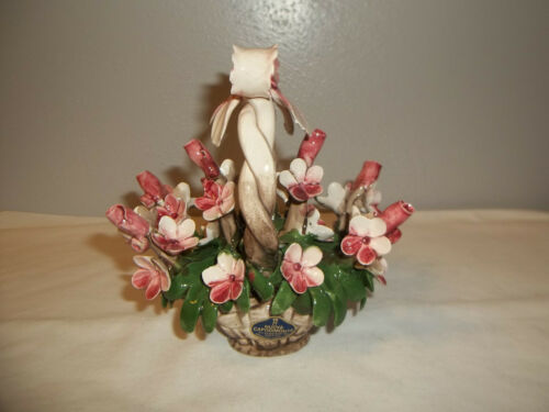 Title (ebay affiliate link): SMALL NUOVA CAPODIMONTE FLORAL BASKET WITH PINK BOW & FLOWERS 5 1/4" TALL ITALY