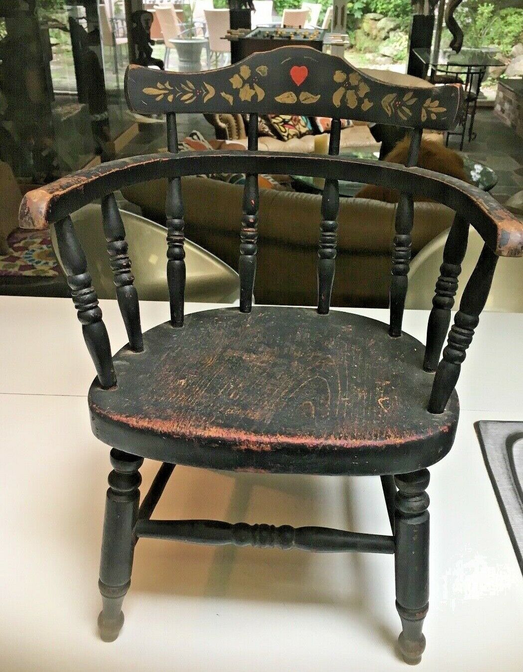 Title (ebay affiliate link): Primitive Penn Dutch? folk art painted child''s antique captain chair spindles