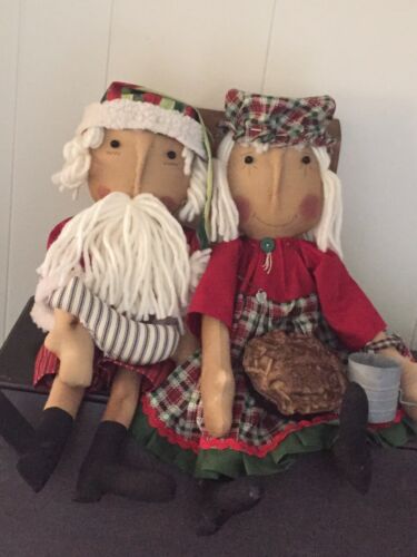 Primitive Folk Art Raggedy Ann Doll Mr. Mrs. Claus Christmas In July!!