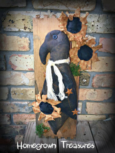 Title (ebay affiliate link): Primitive Crow with Sunflowers on Old Board Wall Hanger!!! One of a Kind!!