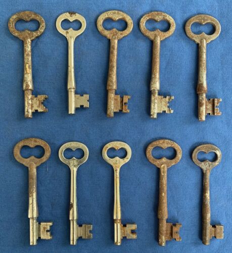 LOT 10 CORBIN ANTIQUE SKELETON KEYS FURNITURE LOCK SOLID BARREL IRON STEEL METAL