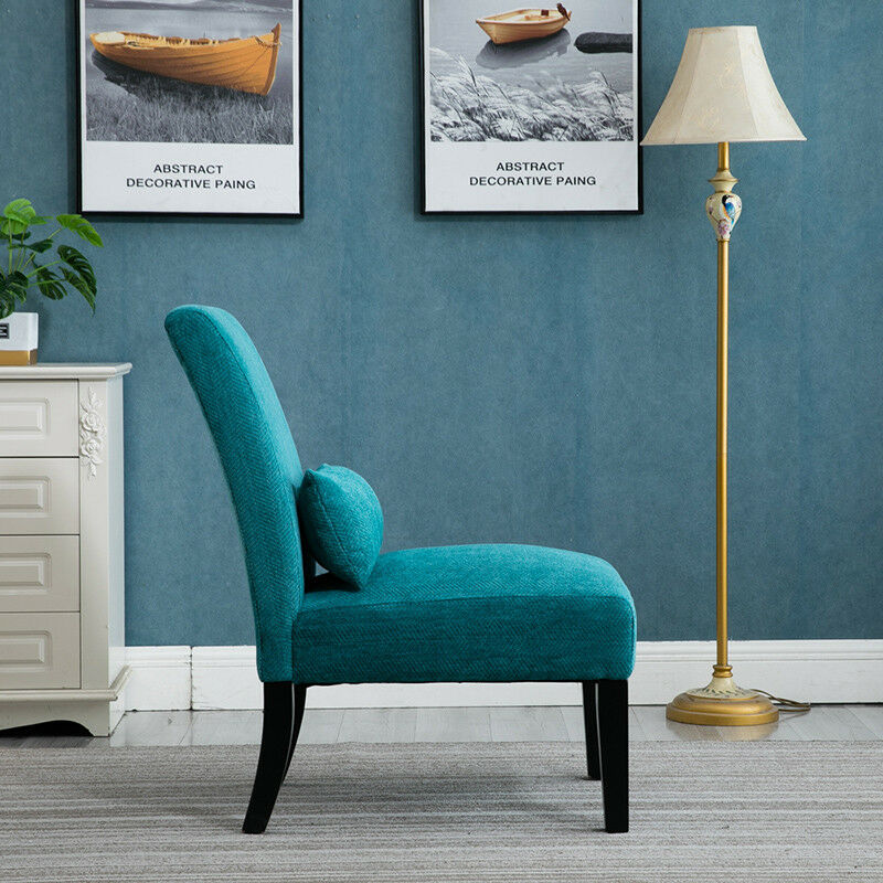 Title (ebay affiliate link): Pisano Teal Blue Accent Chair w/ Kidney Pillow Contemporary Fabric Armless Retro