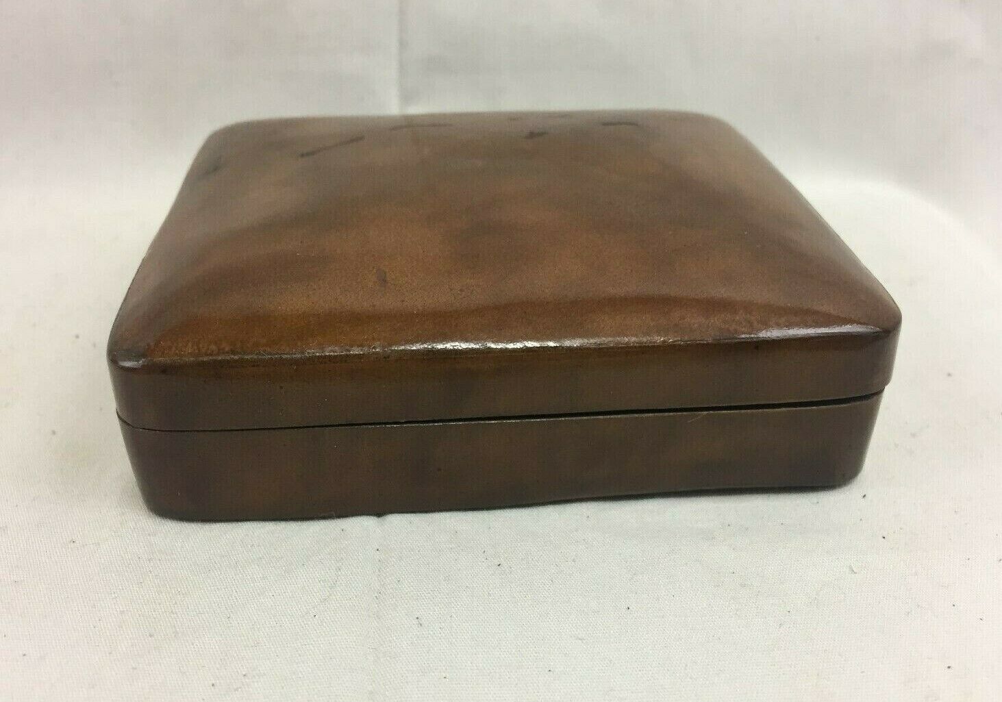 Great Vint. Italian Rich Brown Rigid Leather Domed Box 3 3/4" x 3 1/4" x 1 1/4"