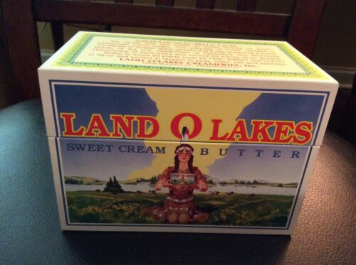 Title (ebay affiliate link): Land O Lakes Sweet Cream Butter Recipe Card Metal Box Vintage In New Cond.