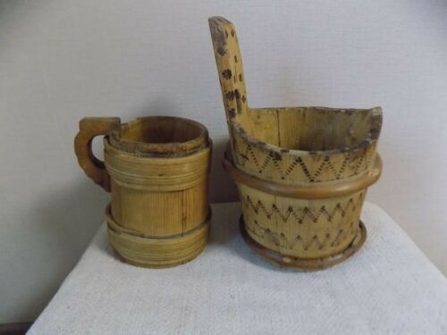 Two antique Hutsul Wooden dishes jugs Ukraine Primitive 1900s Great condition