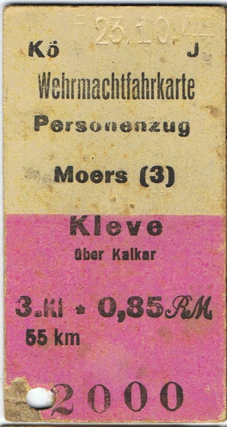 Title (ebay affiliate link): Railway tickets Germany Moers to Kleve third class single 1944