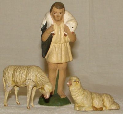 3 VINTAGE GERMAN SHEEP AND SHEPHERD FIGURES