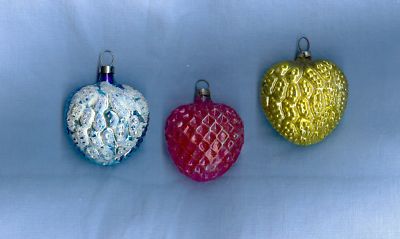 3 Old Antique Vintage GERMAN Christmas Ornament HEARTS
