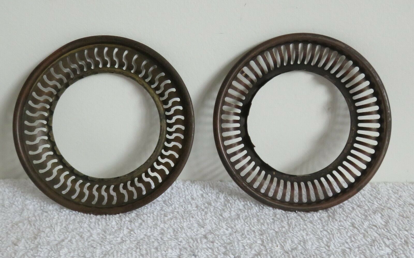2 x VICTORIAN BRASS DUPLEX OIL LAMP SHADE GALLERIES, 4" DIA. FIT.