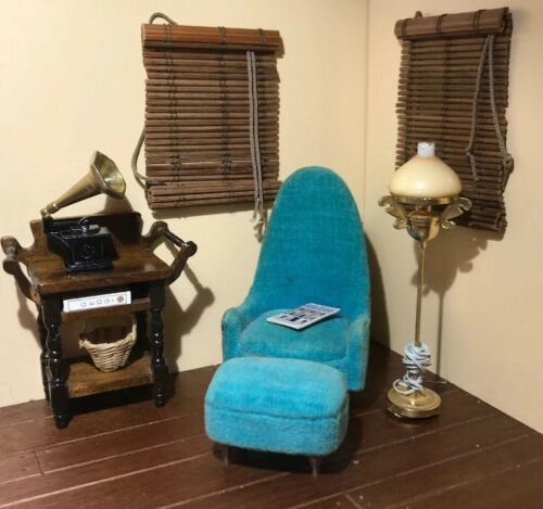 Title (ebay affiliate link): VINTAGE DOLLHOUSE FURNITURE IDEAL PETITE PRINCESS BLUE CHAIR & OTTOMAN