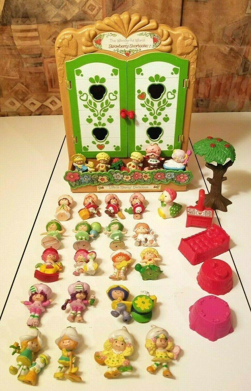 RARE Lot Vintage 1983 Strawberry Shortcake Cabinet, 26 Mini Figures & Furniture