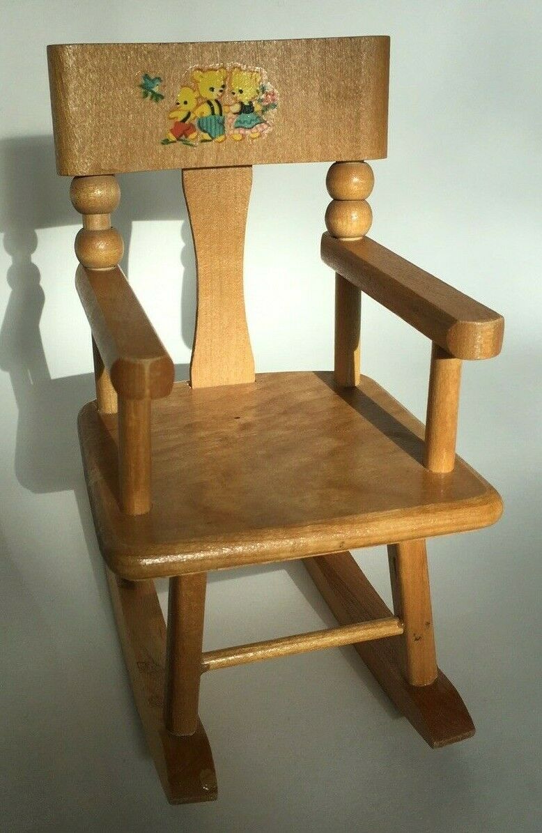 Title (ebay affiliate link): 1950''s STROMBECKER DOLL FURNITURE: 7" WOOD ROCKING CHAIR