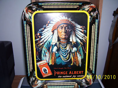 TIN PRINCE ALBERT TOBACCO TRAY/INDIAN CHIEF JOSEPH BUST