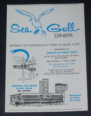 60's SEA GULL DINER & SPILLER'S Kittery & York ME. Ad