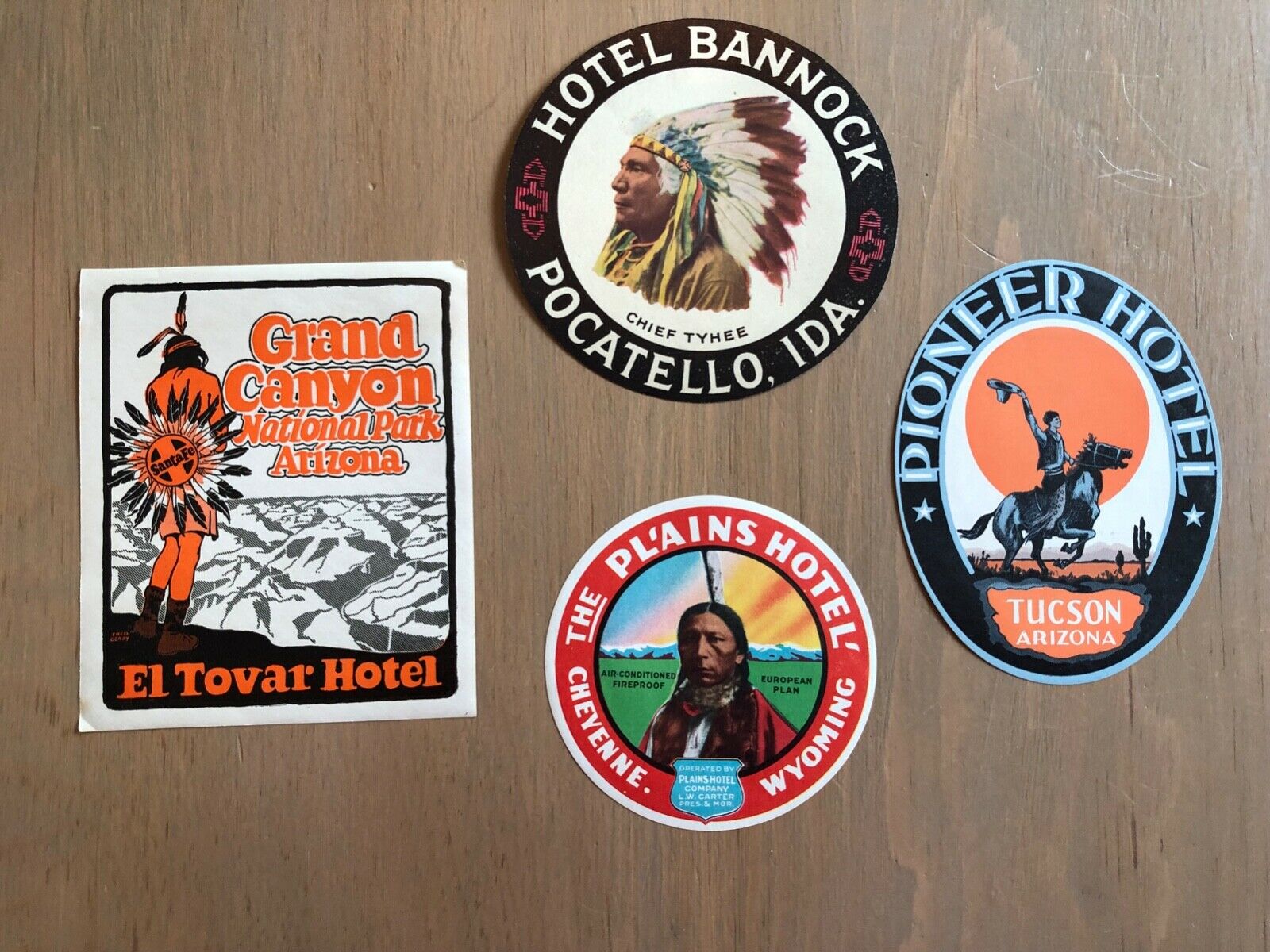 Lot of Four Vintage Southwest Western Hotel Luggage Labels Grand Canyon Indians
