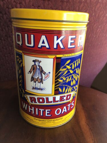 Title (ebay affiliate link): Vintage 1984 Quaker Oats Tin Canister Oatmeal Can Limited Ed