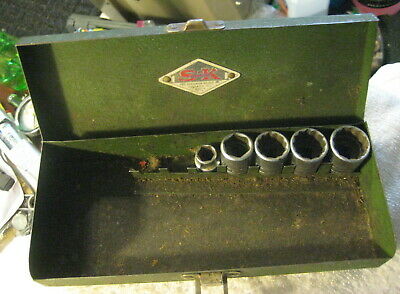 Vintage SK S-K 3/8" socket set,Usa with 5 sockets,no ratchet or wrench,tool box