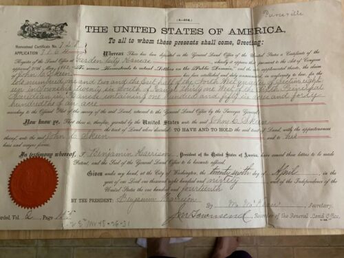 Title (ebay affiliate link): 1890 USA Homestead Certificate No. 728 Actual Settlers On The Public Domain