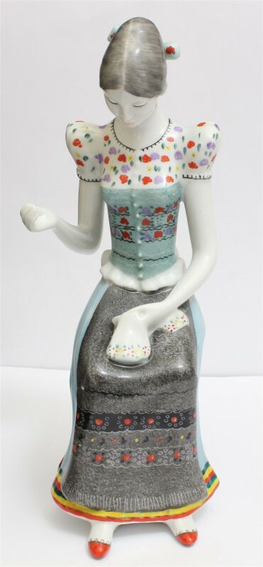 Vintage Hollohaza Hungary Hand Painted Porcelain Seamstress Lady Figurine 9"