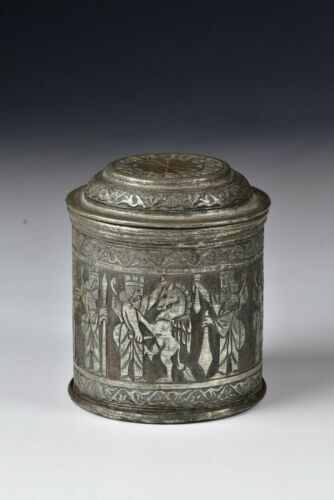 Title (ebay affiliate link): 19th Century Middle Eastern Tinned Copper Container with Characters & Animals