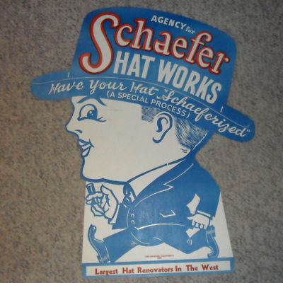 Old Paper, Schaefer Hat Works, advertising sign 22"x18"