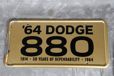 Title (ebay affiliate link): 1964 Dodge 880 Vintage dealer license plate Original