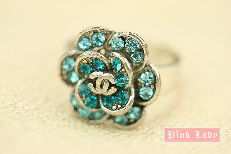 Q75 Blue Crystal Antique Silver Tone Rose Ring