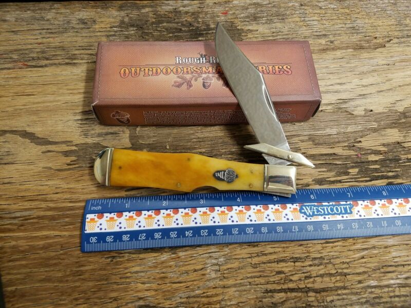 Title (ebay affiliate link): Rough Rider RR1083 Smooth Antique Bone Large Coke Bottle Lock Back Acorn Shield