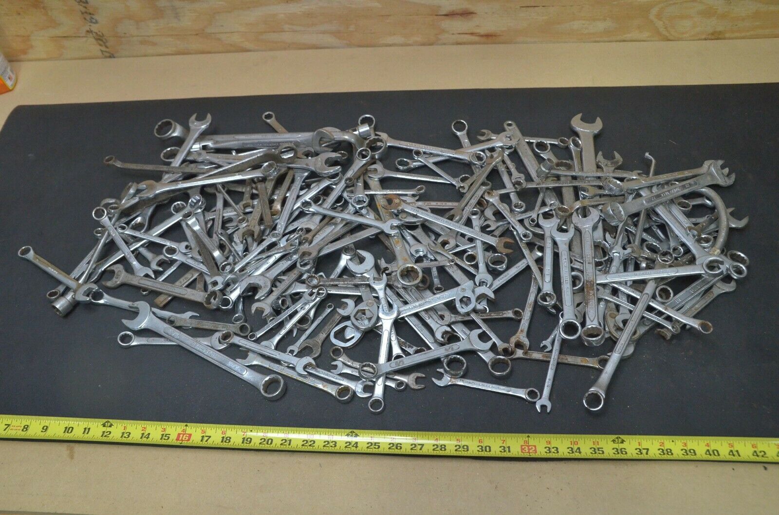 Title (ebay affiliate link): Huge Lot of 40+ lbs Combination Wrenches SAE Metric box end mechanics tools set