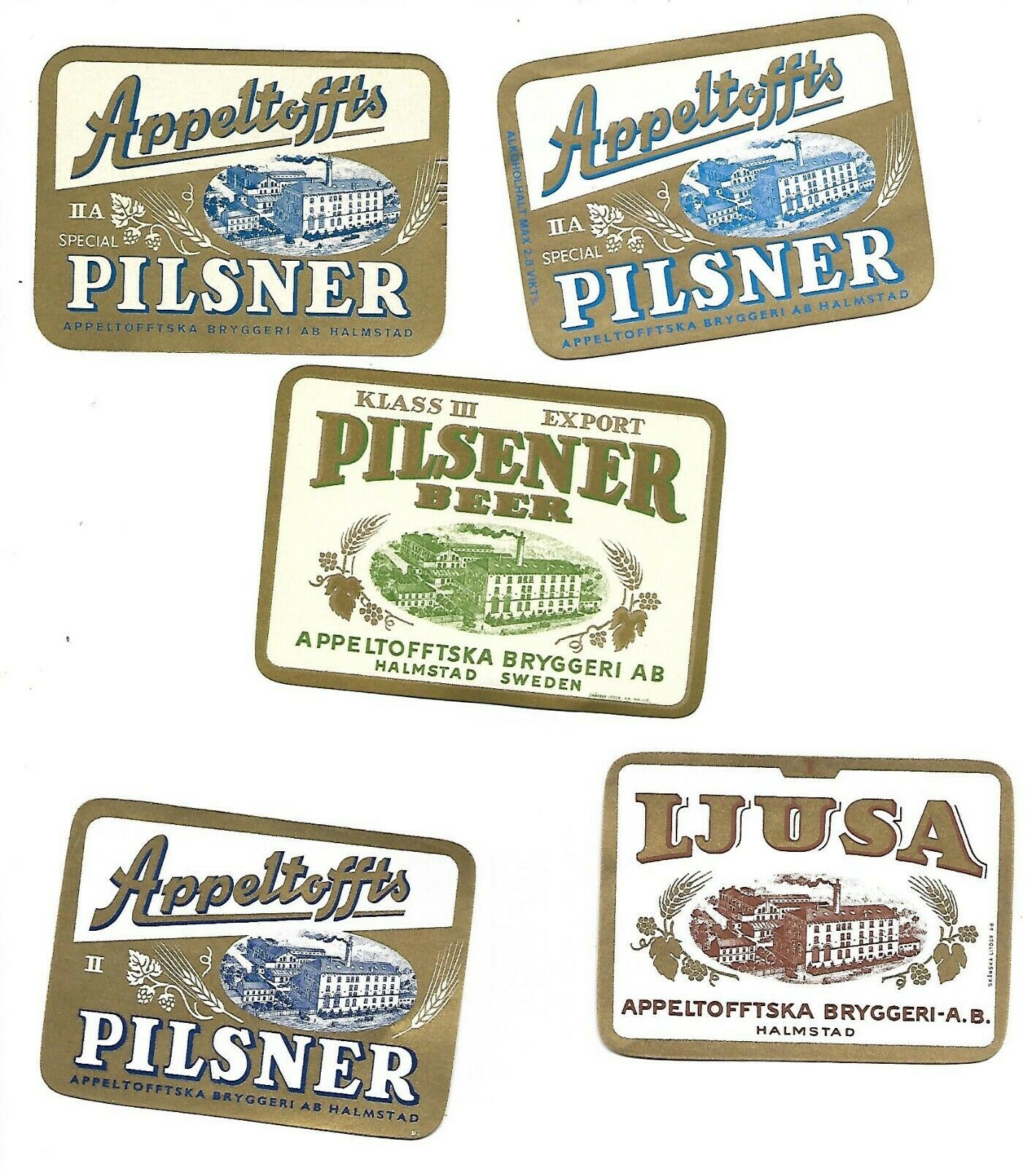 Title (ebay affiliate link): 5 OLD APPELTOFFTSKA BRYGGERI SVERIGE SWEDEN PILSNER LJUSA