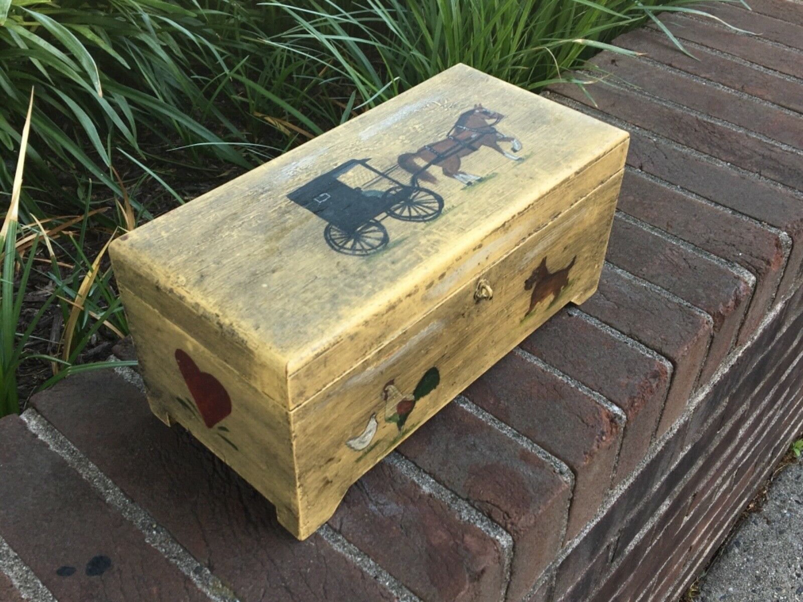 Title (ebay affiliate link): RARE 19TH C PENNSYLVANIA DUTCH PAINT DECORATED WOODEN KEEPSAKE LOVE LETTER BOX !
