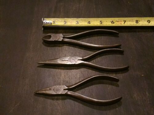 Vintage Needle Nose Pliers and Side Cutter ~ Crescent 225 Utica 654 Krauter 4501