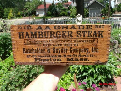 VINTAGE ADVERTISING WOODEN BOX WOOD OLD BOSTON MASS BATCHELDER SNYDER HAMBURGER